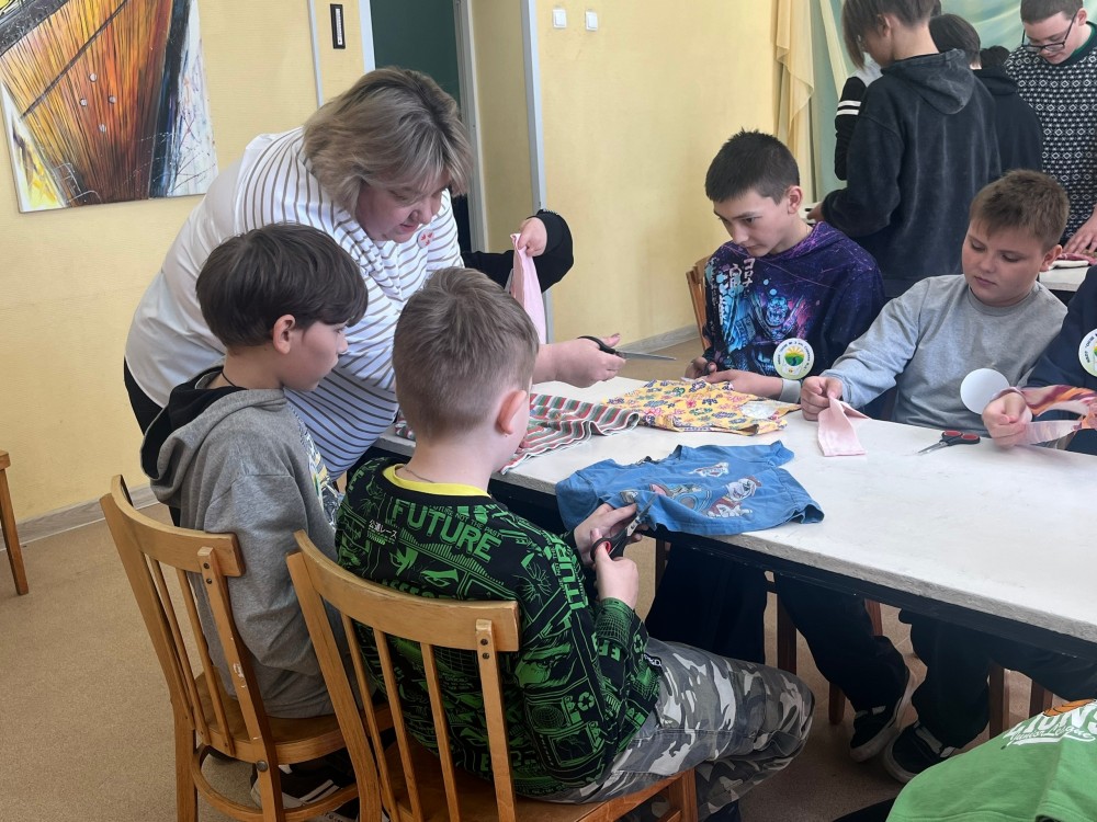 · встретились с волонтёром приюта Региной Вячеславовной Матчиевой, которая научила делать игрушки для собак из старых футболок.