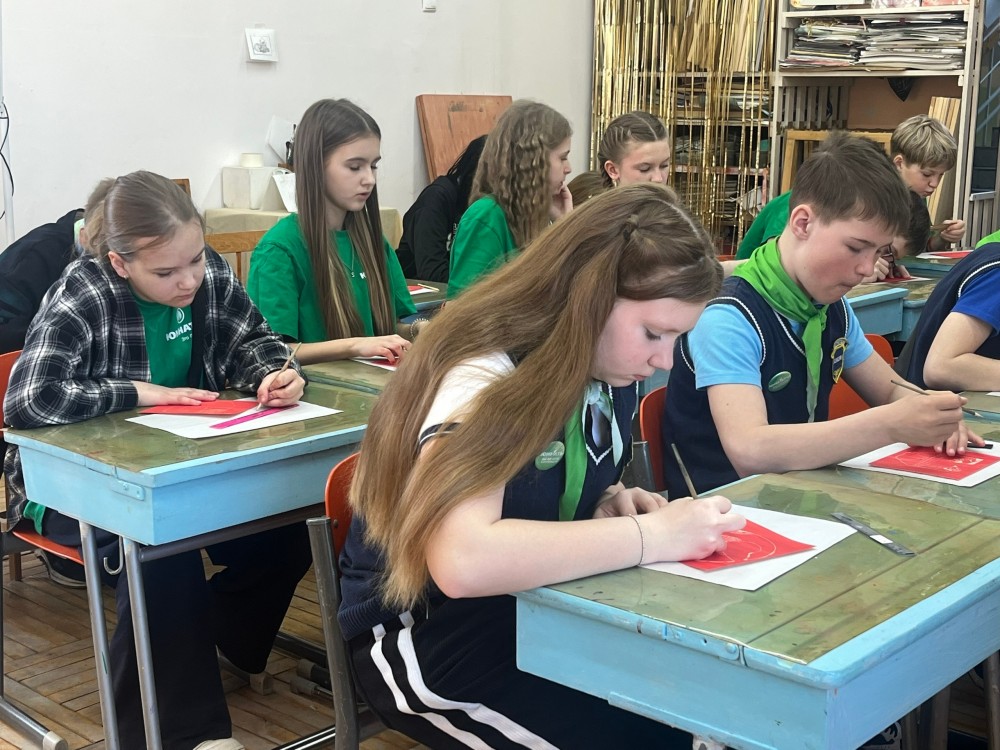 · на мастер-классе ребята создавали олонецкого гуся в технике граттаж;
