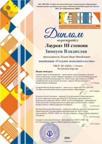 Диплом 2 степени - Каноева Александра, Емельянова Майя (преподаватель Шаргина Э.Н.); Бобина София, Гаврилов Артур, Кунильский Максим, Яковлев Тимур (преподаватель Стаппиева И.В.).
