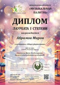 Абрамов Мирон — лауреат III степени на VI Международном конкурсе «Карелия — величественный край»;