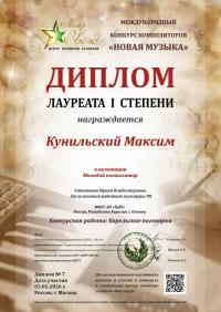 Абрамов Мирон и Кунильский Максим стали победителями сразу в нескольких музыкальных конкурсах международного масштаба, получив звание Лауреата I степени в номинациях «Общее фортепиано» и «Молодой композитор». Кроме того, Максим завоевал Гран-при на международном конкурсе «Юный пианист». Участие в конкурсах и концертной деятельности стимулирует ребят продолжать обучение, рождает интерес к публичным выступлениям и повышает самооценку.Поздравляем!