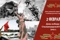 2 февраля вся страна отмечает День воинской славы России — день разгрома советскими войсками немецко-фашистских войск в Сталинградской битве.Битва за Сталинград длилась 200 дней и ночей (17 июля 1942 – 2 февраля 1943 гг.) и проходила на огромной территории – свыше 100 000 квадратных километров.Выделяют два основных периода битвы: оборонительный (17 июля – 18 ноября 1942 года) и контрнаступательный (19 ноября 1942 года – 2 февраля 1943 года). Решающее сражение развернулось в Сталинграде, где были окружены до 300 000 солдат и офицеров вермахта и их союзников. Немецкие войска потерпели крупное поражение, а также потеряли до четверти своей армии, которая находилась в тот момент на территории Советского Союза. 2 февраля 1943 года, на берегах Волги была одержана Победа, которая положила начало коренному перелому во Второй мировой войне. Событие является одним из символов мужества и стойкости, проявленных со стороны бойцов Красной Армии.Почтим память героев, которые, не жалея жизни, защищали своё Отечество!