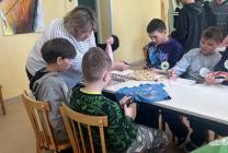 · на мастер-классе ребята создавали олонецкого гуся в технике граттаж;